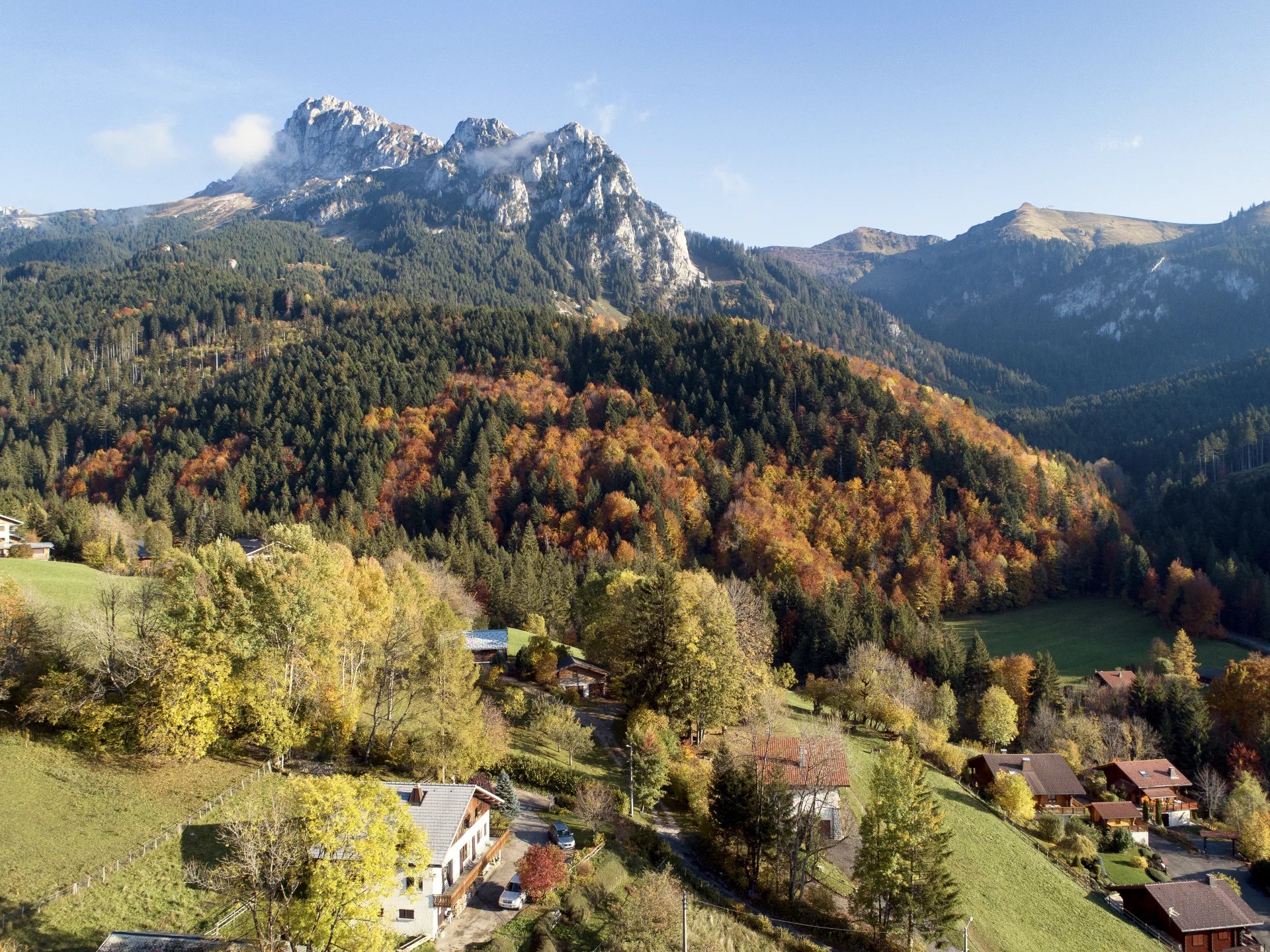 BERNEX - Terrain constructible et viabilisé de 885 m ² - Vue panoramique montagnes et pistes de ski - Exposition Sud-Ouest